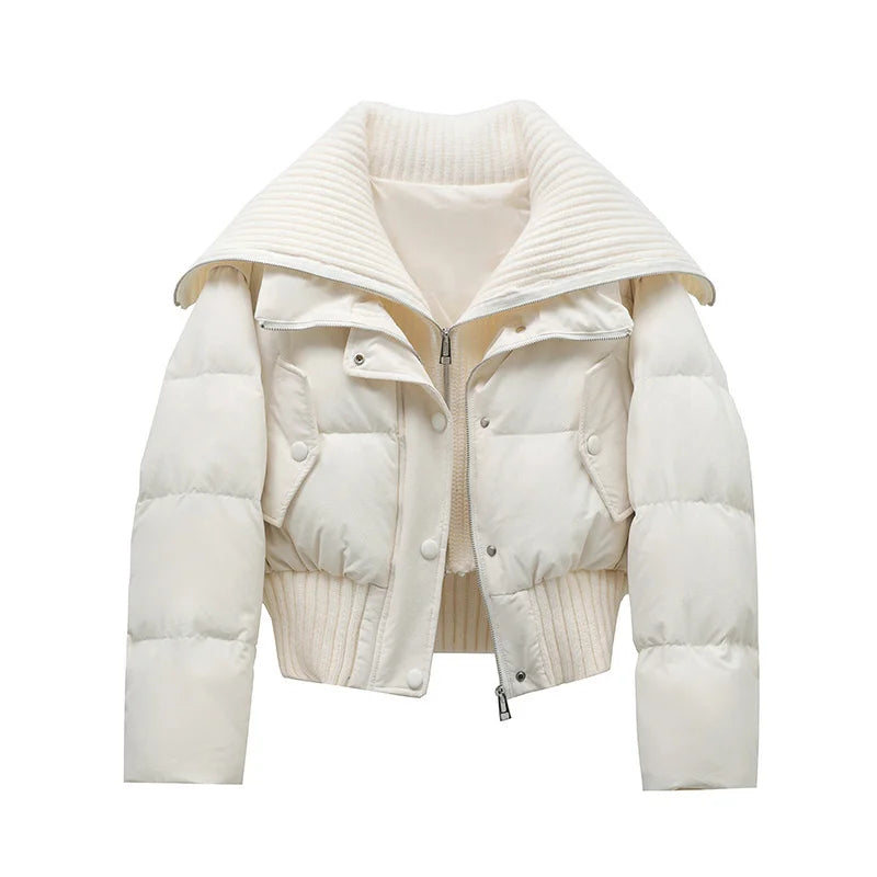 Gör dig redo för säsongens kyla med vår kortare pufferjacka. En modern och elegant vinterjacka som kombinerar värme, komfort och stil. Den unika tvådelade designen med ribbstickad krage ger ett trendigt lager-på-lager intryck utan att kompromissa med bekvämligheten.