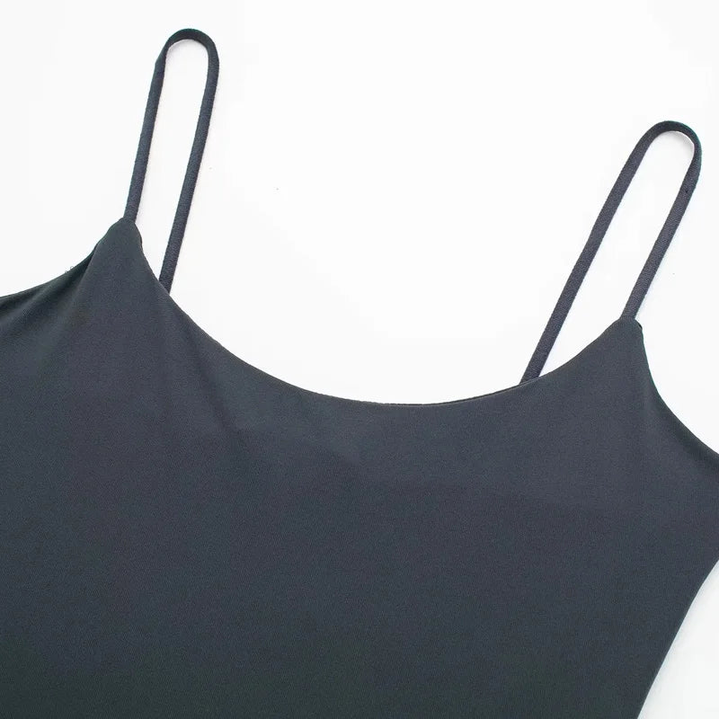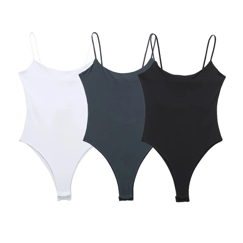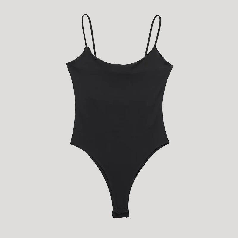 Upptäck den perfekta balansen mellan enkelhet, elegans och komfort. Denna stilrena body med tunna axelband är ett nyckelplagg som lyfter varje outfit oavsett om du väljer att styla den med jeans, kjol, eller kostymbyxor.