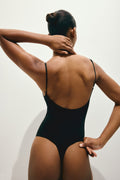 Med en sömlös känsla och en mjuk, följsam stretch-kvalitet formar den sig efter kroppen på ett smickrande sätt. Den minimalistiska designen med rundad urringning och hög benskärning ger en feminin och tidlös look som aldrig går ur stil.