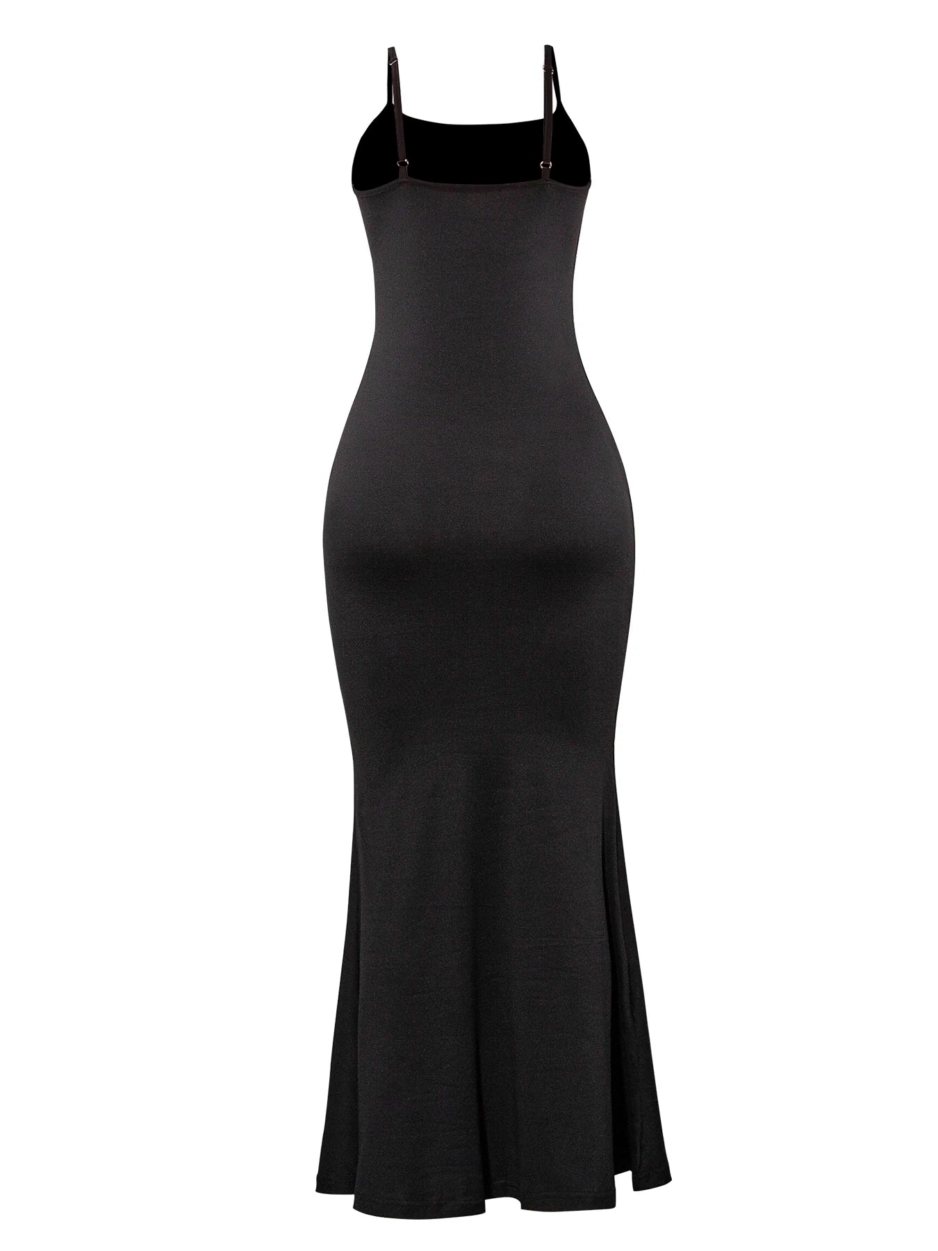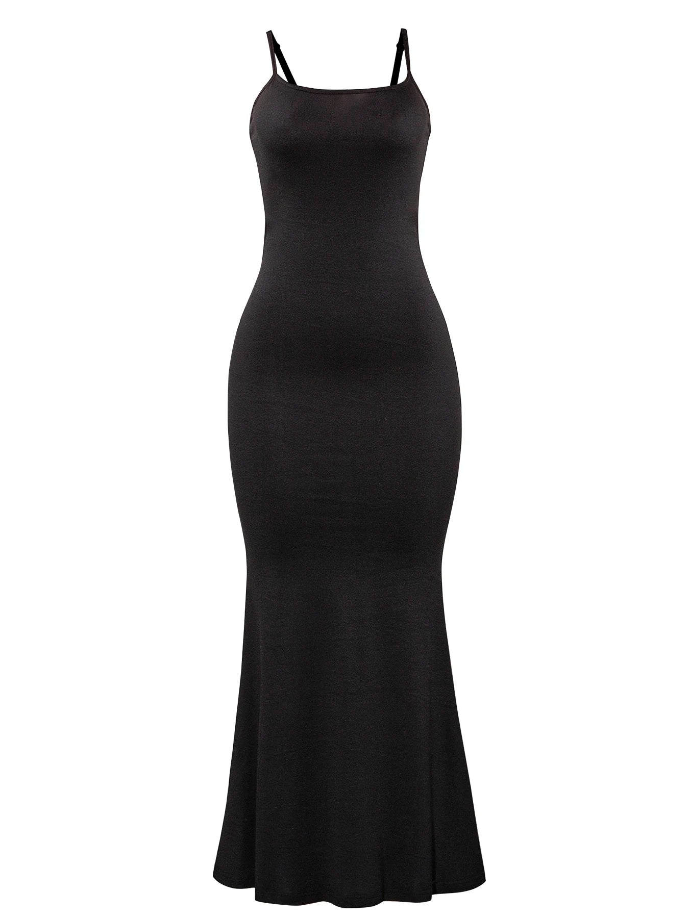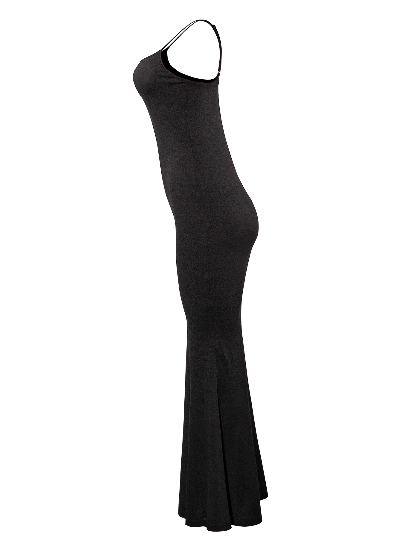 Denna eleganta och tidlösa klänningen med spagettiband är ett måste i varje garderob. Med sin figurnära passform och mjuka, stretchiga tyg framhäver den dina naturliga former på ett smakfullt och bekvämt sätt. Perfekt för både vardags samt fest, antingen med sneakers för en avslappnad look eller klackar för en mer uppklädd stil.