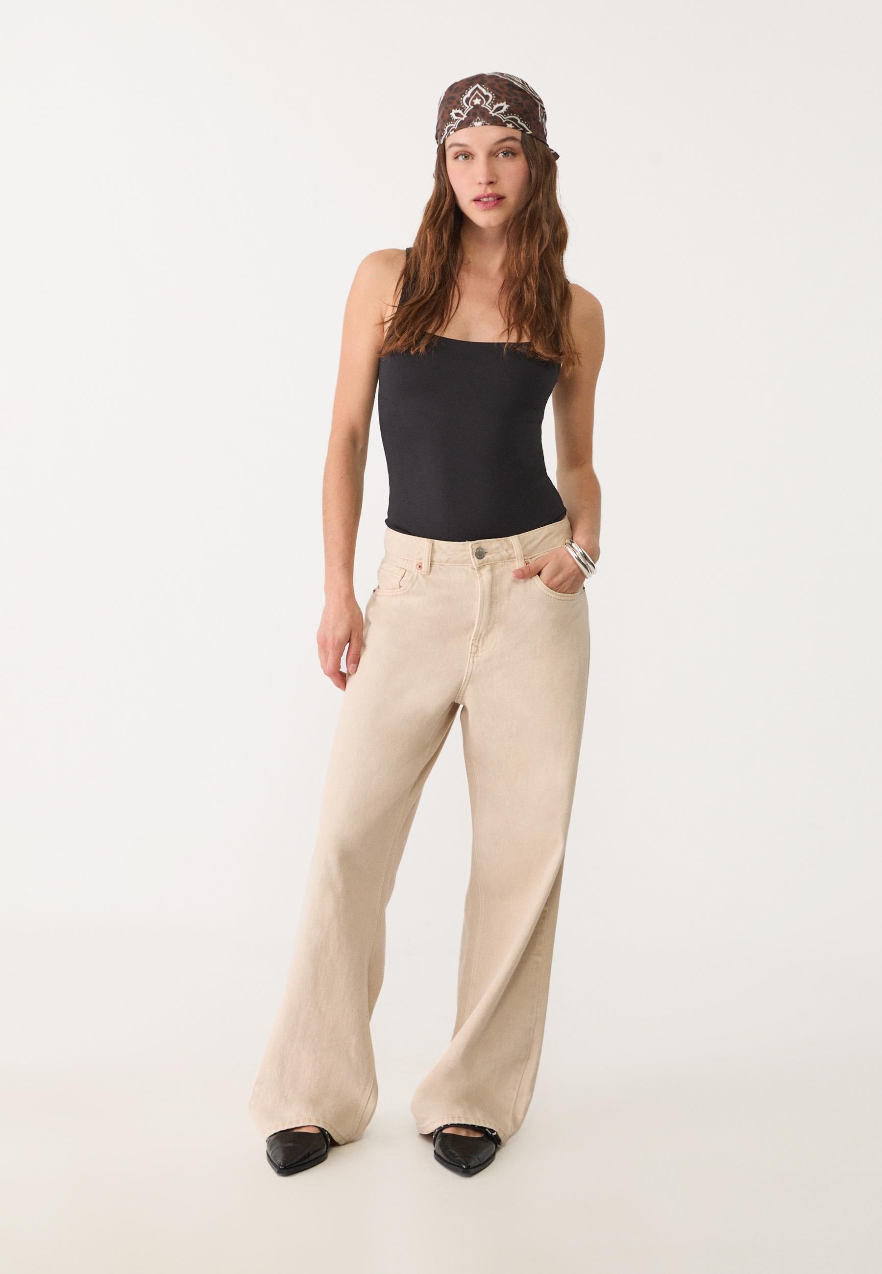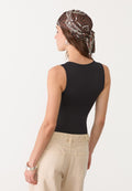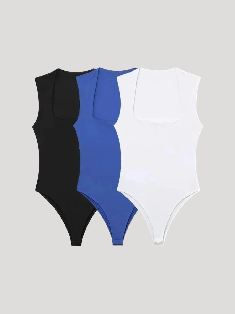 Denna eleganta och minimalistiska bodysuit är ett mångsidigt basplagg som kombinerar stilren design med perfekt passform. Med sin sofistikerade fyrkantiga urringning och ärmlösa siluett passar den lika bra till vardags som fest.