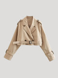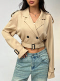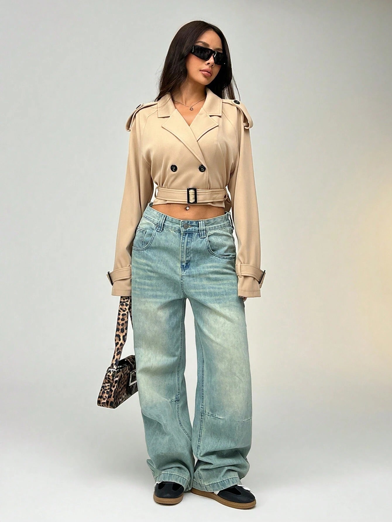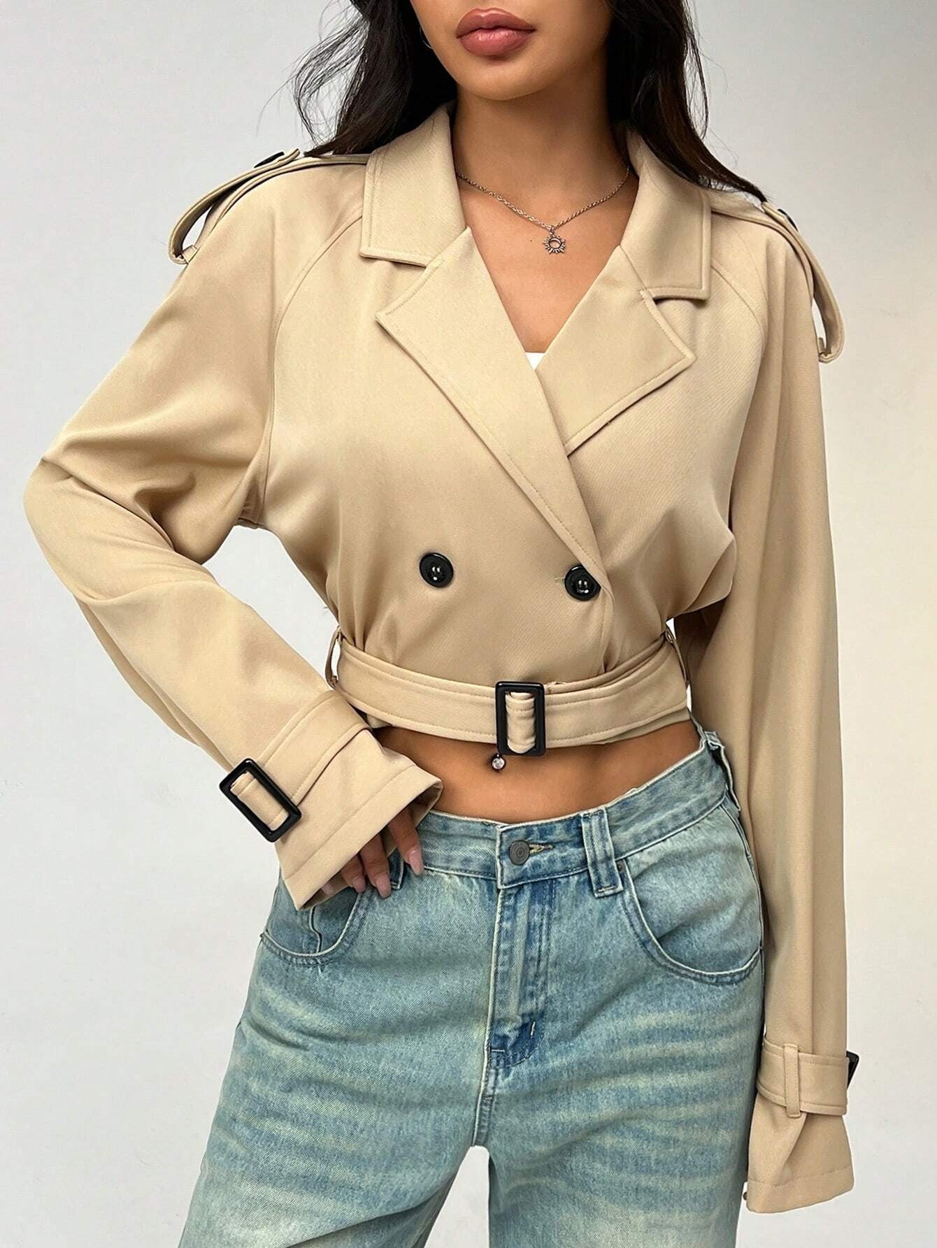 Upplev en modern twist på den ikoniska trenchcoaten. Denna korta beige trench är skapad för dig som vill kombinera klassisk elegans med trendig edge. Den skräddarsydda siluetten framhäver din midja med ett justerbart bälte. Perfekt för vår/höst när du vill hålla stilen, funkar perfekt till allt i din garderob. Spelar ingen roll om du bär den med jeans och sneakers, eller en klänning och klackar.